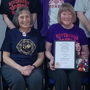 On Wednesday 28th January 2026, at a Rivington Morris practice, Melanie Barber was presented with her Honorary Life Membership certificate and badge by President Pauline Woods-Wilson, and the nomination read out by Jenny Everett (past Treasurer and Events Officer, current co-optee, and Honorary Life Member).