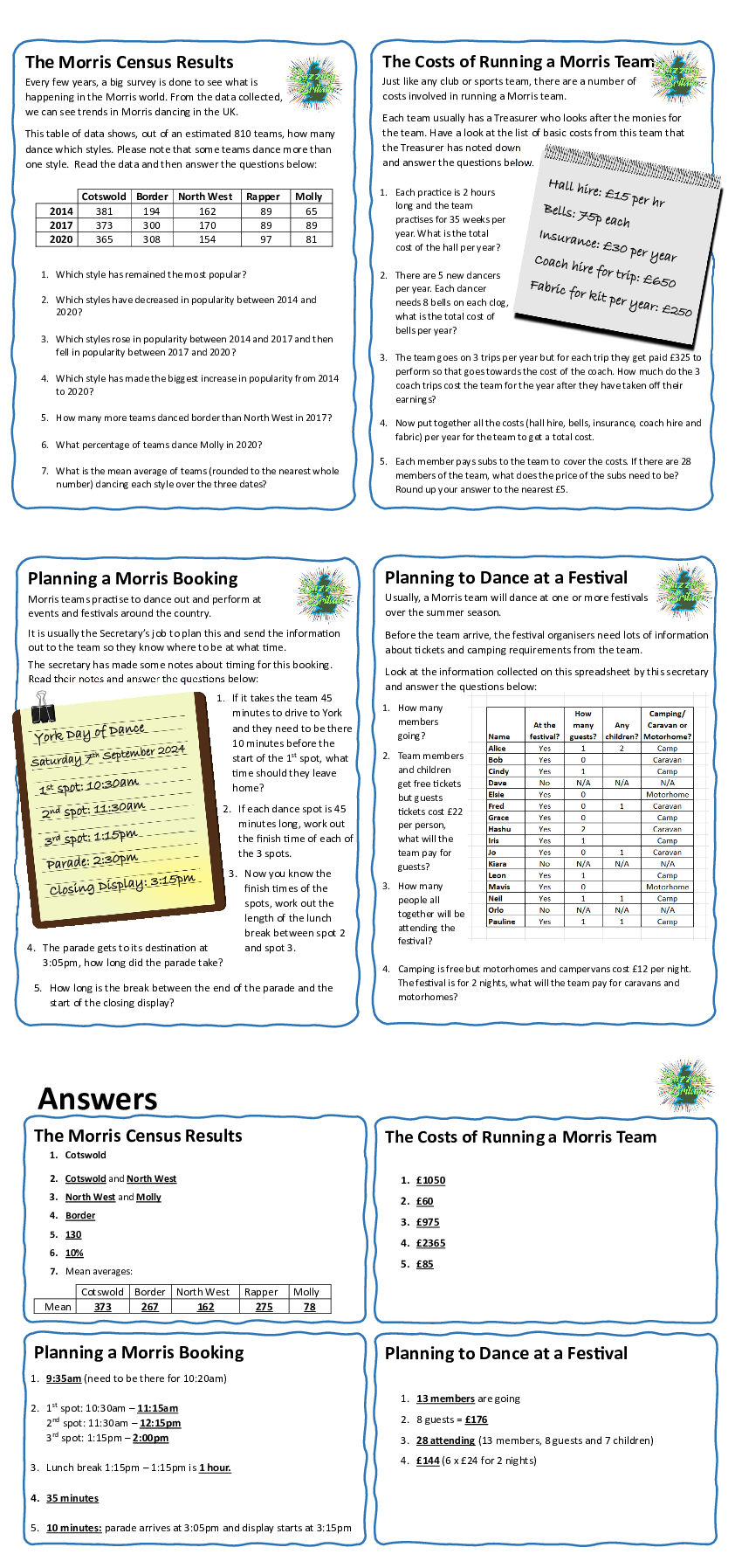 HA Morris Themed Maths Problems